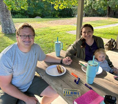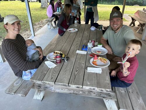 , playing on the basketball court, and sharing a kid-friendly meal of hotdogs, watermelon